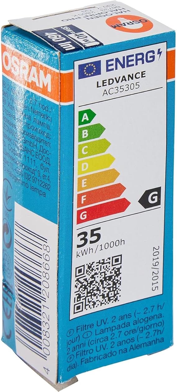 Osram Halojen Lamba Halopin Eco, şeffaf, 33 Watt 230 Volt, Duy G9, ışık akımı: 460 lümen, renk: 2.700 K, kullanım ömrü: 2.000 Saat Nuance, dimmer için% 30’a varan enerji tasarrufu (66733 ECO)
