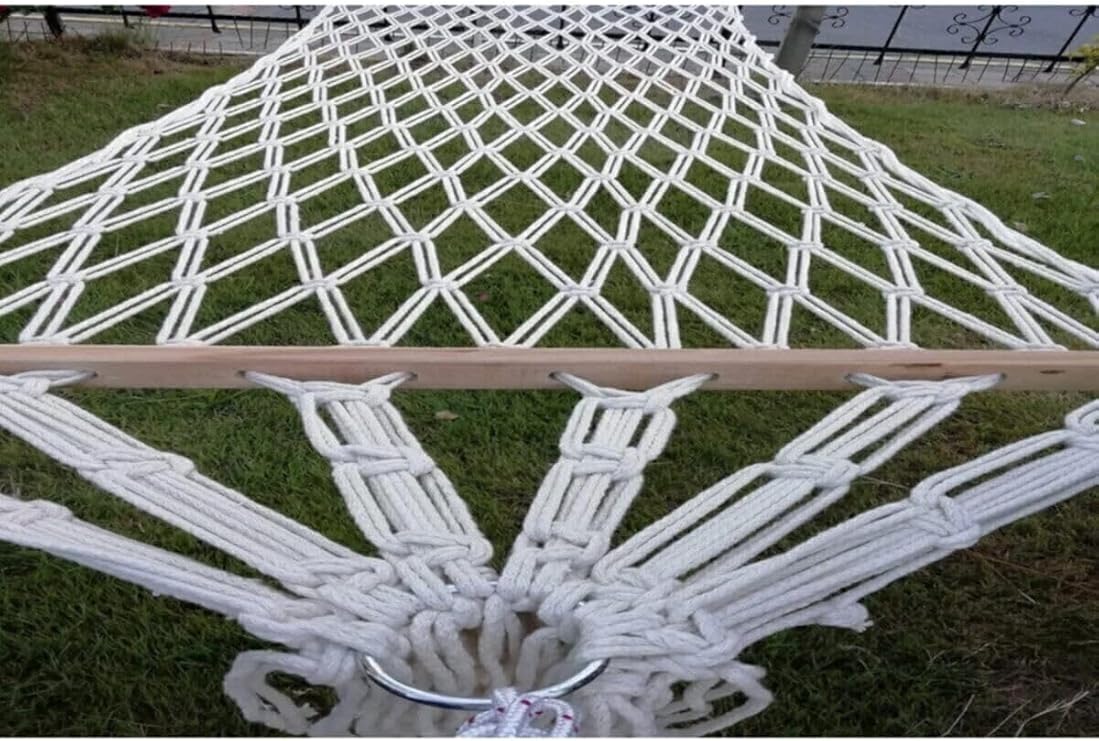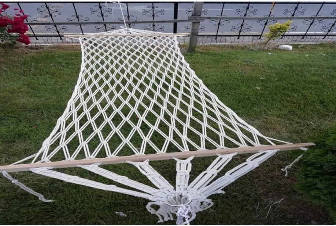 Hamak Beyaz Tek Kişilik Çift Örgülü Pamuk Hamak