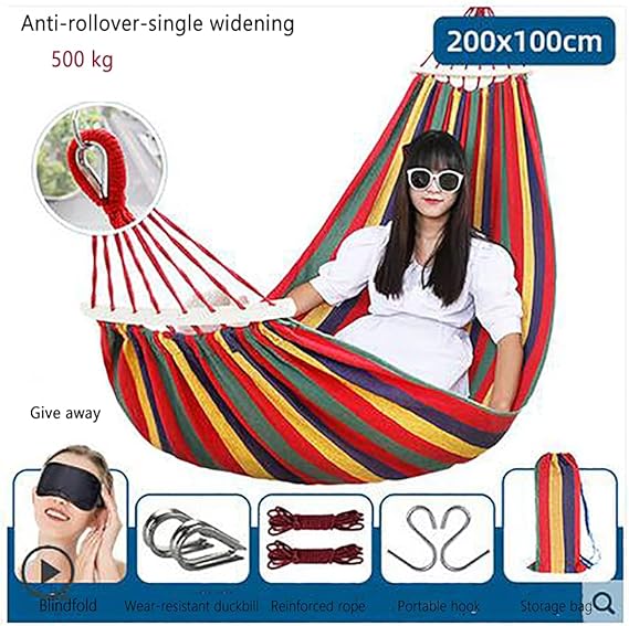 Hamak, dış mekan salıncağı, iç mekan, yuvarlanmaz, tek ve çift, kolej, yatakhane, asma koltuk, ev, yetişkin dış mekan kullanımı (tek genişletme, gökkuşağı, 200 x 100 cm)