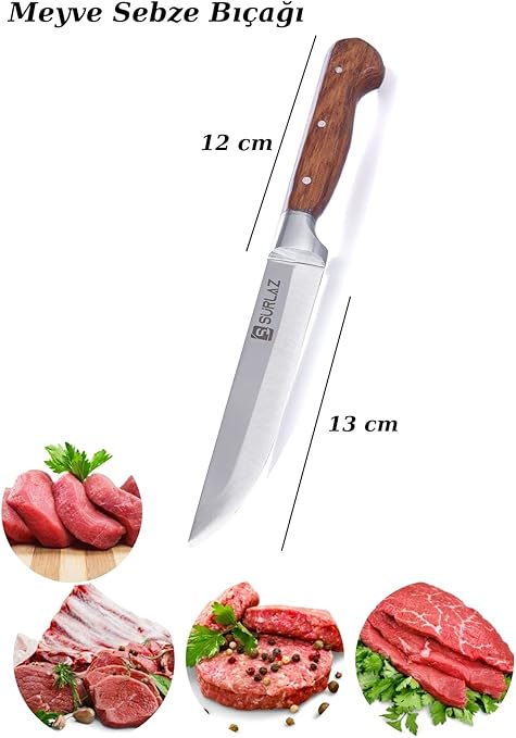 Bakım: Ahşap bıçak sapları bulunmamaktadır, bulaşık makinesinde yıkayabilirsiniz