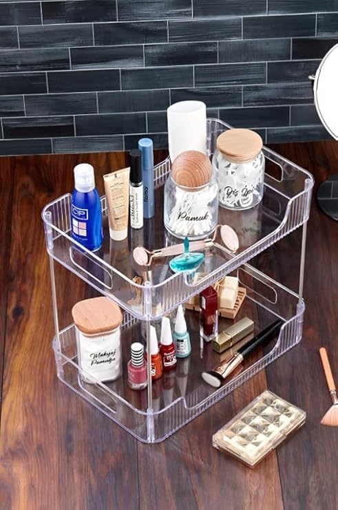 HANEM 2 Katlı Banyo Mutfak Ofis Ve Makyaj Düzenleyici Çok Amaçlı Masa Organizer GÜMÜŞ