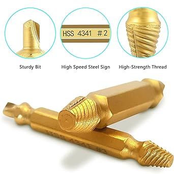 [Yüksek mukavemetli malzeme] Hasarlı Vida Çıkarıcı Kiti, sağlam ve dayanıklı, yüksek sertliğe sahip ve giymesi kolay olmayan yüksek kaliteli yüksek hızlı alaşımlı çelik HSS 4341’den yapılmıştır.