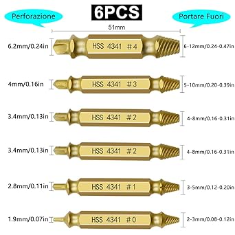 Hasarlı Vida Çıkarıcı Kiti 6 adet Hasarlı Vida Sökücü ve Çıkarıcı Seti Kırık Cıvata Çıkarıcı Kiti Hasarlı Soyulmuş Vida Çıkarıcı Seti HSS 4341 # Soyulmuş veya Hasarlı Vidaları veya Cıvataları Çıkarın