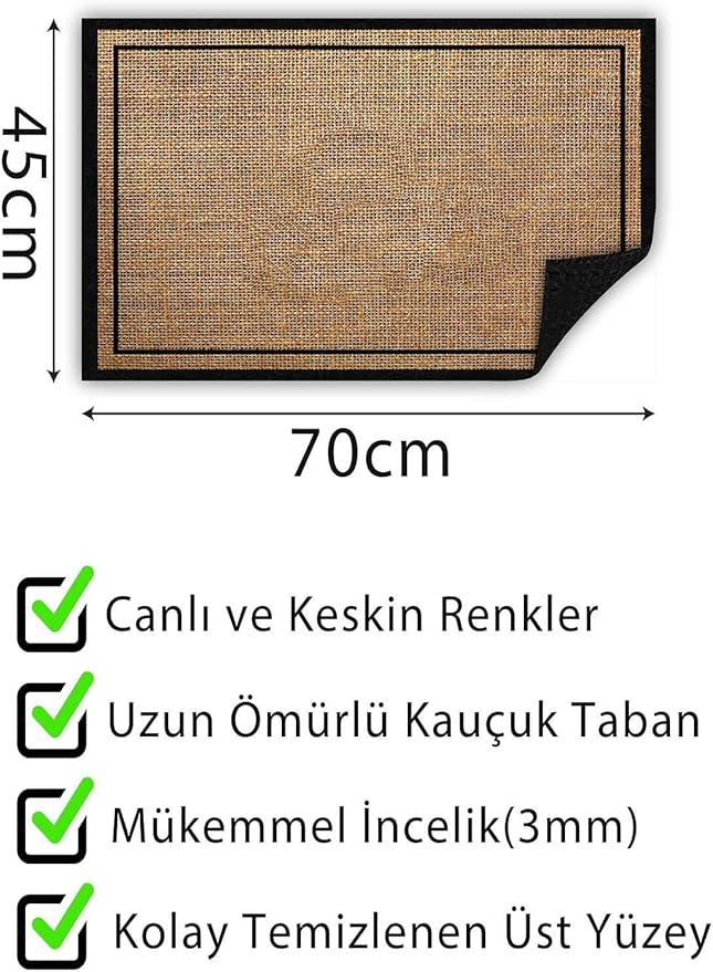 Hasır Baskılı Kapı Önü Paspası Dekoratif Kapı Paspası Dış Mekân Paspas Ev İçi Paspası 45x70cm