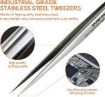Mükemmel gerginlik ve kontrol: Paslanmaz çelik cımbızlar, optimum konfor ve kontrol için kavraması kolay ve mükemmel gerginliğe sahiptir, böylece lehim cımbızlarıyla her şeyi kolayca ve rahatça sıkıştırabilirsiniz.