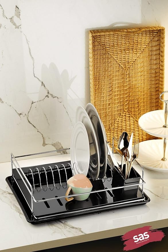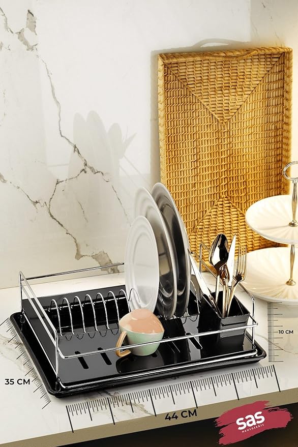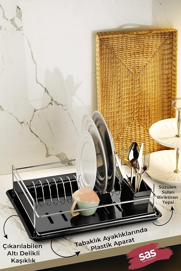 Haus Ömür Boyu Paslanmaz Bulaşıklık Bulaşık Sepeti Tek Katlı Tabaklık Termo Plastik Kaplama Krom TBK-01