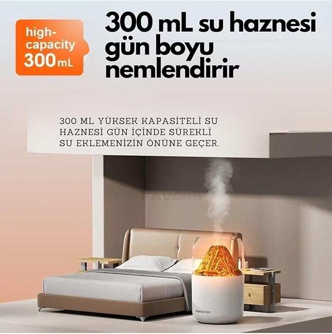 Hava Nemlendirici Rgb Işıklı Dekoratif 300 Ml Ultrasonik Nemlendirici Buhar Makinesi