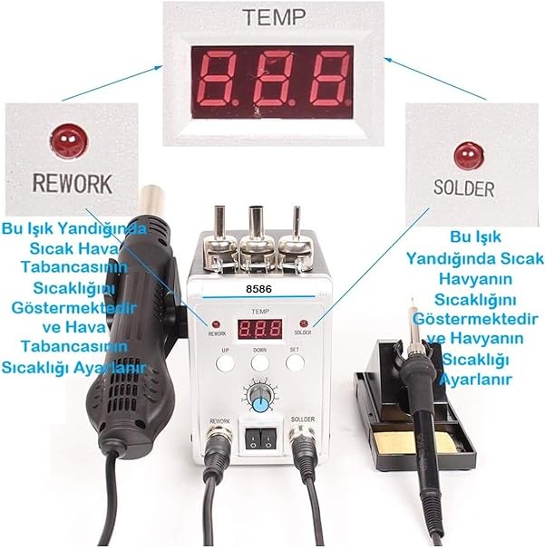 Hava Üflemeli 700w Havya İstasyonu 8586 2 in1 Lehim Makinesi ve Hava Tabancası
