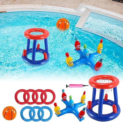 Havuz Oyuncakları | Şişme Havuz Yüzdürücüleri Basketbol Halkası Oyun Seti | Etkileşimli Yüzer Atma Oyunu Çocuk Yetişkin Havuz Deniz Plaj Parti