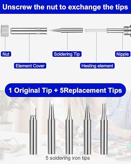 Havya seti, 100 W LED havya, ayarlanabilir ve kilitlenen sıcaklıklar 180℃-500°C, ON/OFF, havya standı, 10 g lehim teli, 5 lehim ucu, elektrikli işler ve ev kullanımı için lehim seti