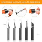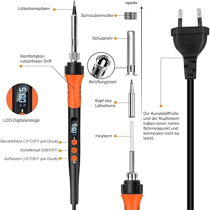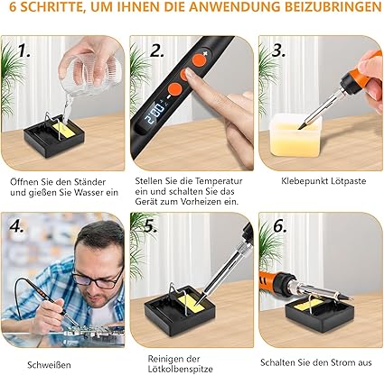 【Komple lehim seti】Havya seti bir havya, lehim teli, lehim macunu, cımbız, temizleme süngerli tutucu, 5 lehim ucu ve bir kılavuz içerir. Bu havya seti tüm lehim gereksinimlerinizi karşılar. Havya süngeri tutucu havya uçlarındaki lekeleri kolayca çıkarır ve kullanım ömrünü uzatır.