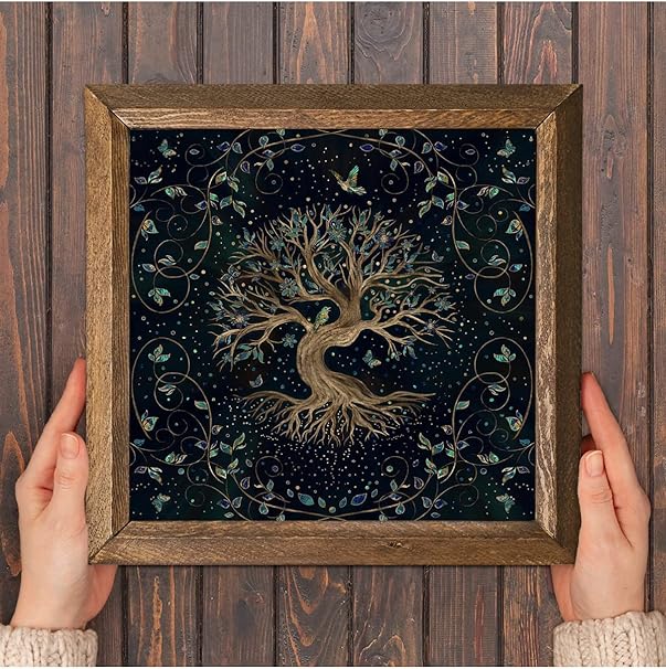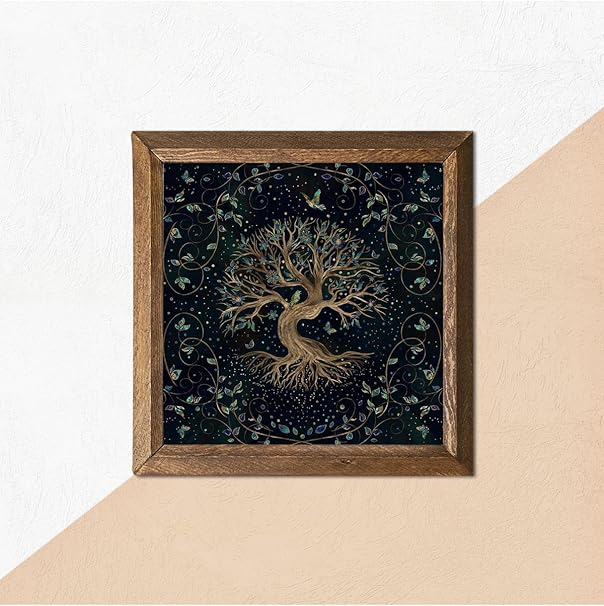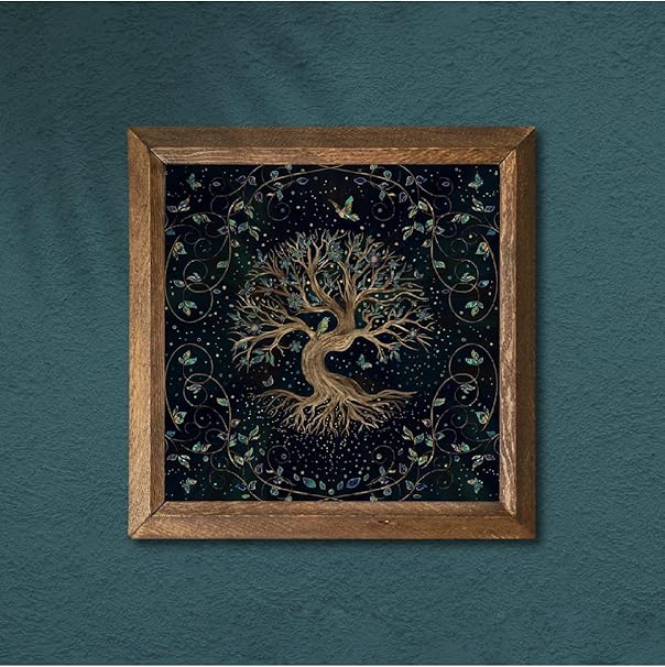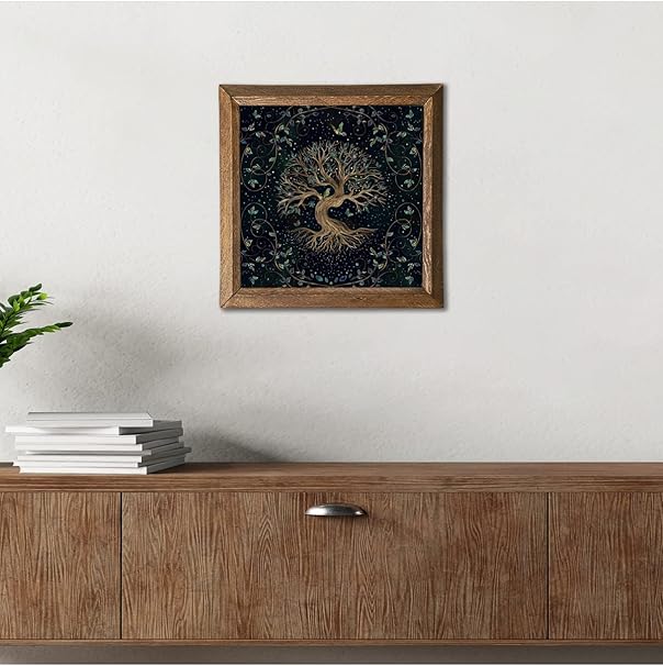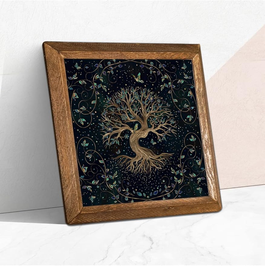 Hayat Ağacı Taş Duvar Tablosu – Ahşap Çerçeveli Taş Tablo – 25×25 cm – Dekoratif Duvar Sanatı – Modern Ev ve Ofis Duvar Dekoru W1-141