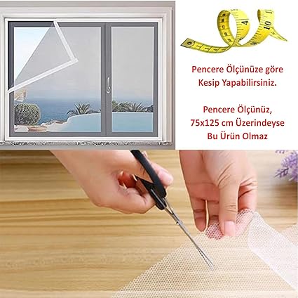 Hazır Sineklik Beyaz Çift Kat Sök Tak Pratik Yıkanabilir Pencere Kapı Sinekliği 75×125 cm