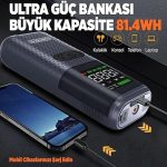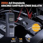 HCB002 22000mAh 2500A Akü Takviye Cihazı + Lastik Şişirme Kompresörü Taşınabilir Jump Starter (Kompresör+Powerbank+Led Lamba+LCD Ekran)