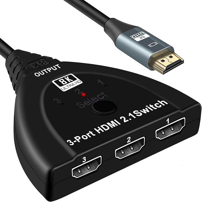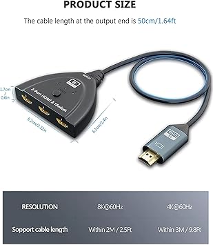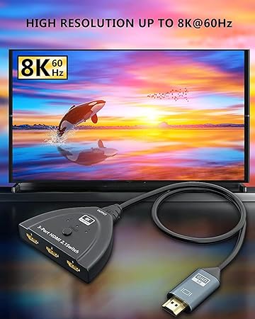 HDMI Anahtarı 3 Bağlantı Noktası, KSRplayer 4K@120Hz/8K@60Hz, 3’ü 1 Arada Çıkış, HDMI 2.1 Ayırıcı, 1.5ft Kablo, PS5 PS4 Roku Xbox TV Monitörü için HDMI Switcher Seçici Kutusu, VRR ALLM HDR Desteği