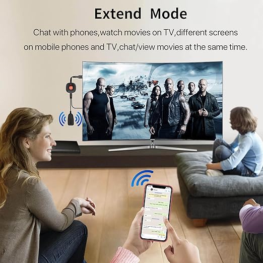 【Esnek ayna ve genişletme modu】: Kablosuz HDMI dongle ile 4K @ 30 Hz, 1080P @ 60 Hz, 1080P @ 30 Hz, 720P dahil olmak üzere bir dizi çözünürlüğün tadını çıkarabilirsiniz. Nefes kesen videoları ve sesleri arkadaşlarınız ve aile üyelerinizle paylaşın. Genişletme modunda videoları televizyona aktarabilir ve aynı zamanda telefonunuzu çoklu görev deneyimi için kullanabilirsiniz