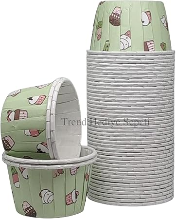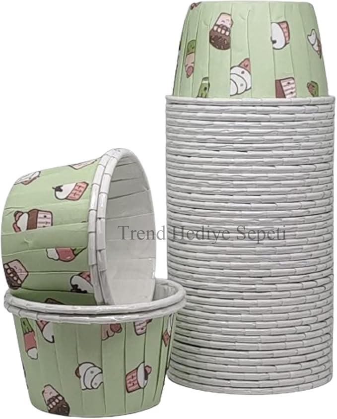 Dondurma Desenli Kek Baskılı Mint Yeşili Muffin Kalıbı Cupcake Kalıbı Kek Kapsülü 50’li.