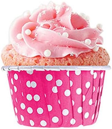 Hediye Sepeti 50’li Koyu Pembe Puantiyeli Muffin Kek Kalıbı, Kek Kapsülü Cupcake Kalıbı, Airfryer Uyumlu