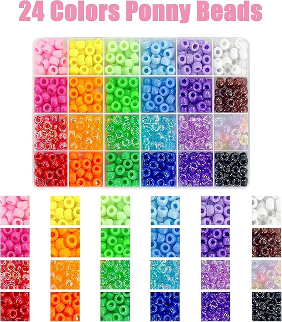 HEGENSA Midilli Boncuk Dökme, Kolye Takı Yapımı için Kandi Boncukları Saç Örgüsü, Bilezik Yapma Kitleri, Saç Boncuğu, Bilezik Boncukları, El Sanatları Örgüler Kızlar için Plastik Boncuklar (24