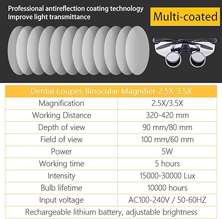 【AYARLANABİLİR İKİNCİ BÜYÜTEÇLER】: Bu büyüteçler, profesyonellerin özel ihtiyaçlarını ve tercihlerini karşılamak için optimum odaklama ve büyütme için kolayca ayarlanabilir. Optimum aydınlatma için ayarlanabilir parlaklığa sahip 5W kablosuz kafa lambası içerir.