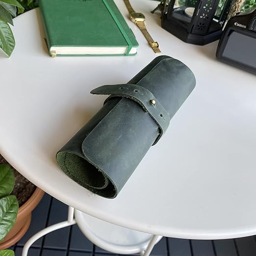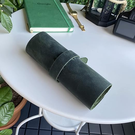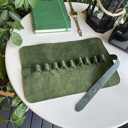 Helsinki – Hakiki Deri Natürel Geniş Tasarım Rulo Kalemlik (Yeşil)