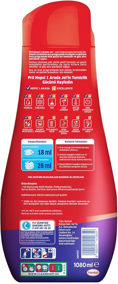 Pril Hepsi 1 Arada Jel çok fonksiyonlu jel formülü sayesinde en zorlu kurumuş ve yanmış lekelerde bile güçlü bir temizlik sağlar