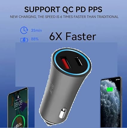 Hepu Araç Içi Şarj Cihazı 3.0 A Qualcomm Pd 20 Watt Fast Hızlı Şarj Aleti Metal Çakmaklık Şarj Type C Kablolu Çift Çıkışlı Yüksek Kalite Hp778