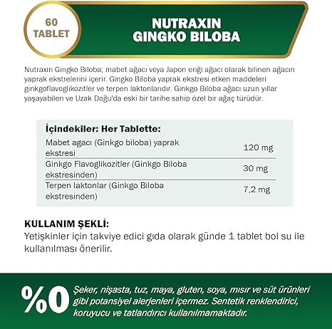 Herbal Ginkgo Biloba+ 120 mg 60 Tablet Takviye Edici Gıda