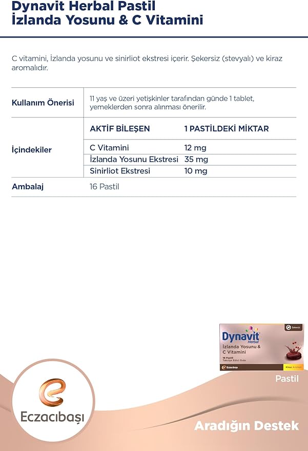 Dynavit Herbal İzlanda Yosunu ve C Vitamini 16 Pastil