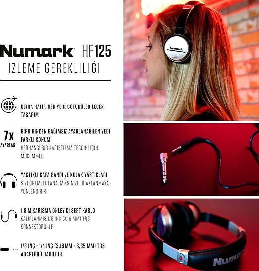 İzleme için gerekli- Yedi farklı bağımsız olarak ayarlanabilen konum ayarına sahip ultra hafif DJ kulaklıkları, her türlü miksaj tercihine hitap eder