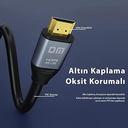 DM 4K 60Hz HDMI 2.0 10 Metre Görüntü Aktarma Kablosu, HDMI üzerinden 4K 60Hz çözünürlüğe kadar görüntü aktarmanızı sağlayan gelişmiş kablolardan biridir.Dinamik HDR özelliği sayesinde daha canlı görüntüler iletir.