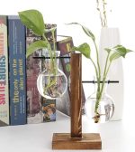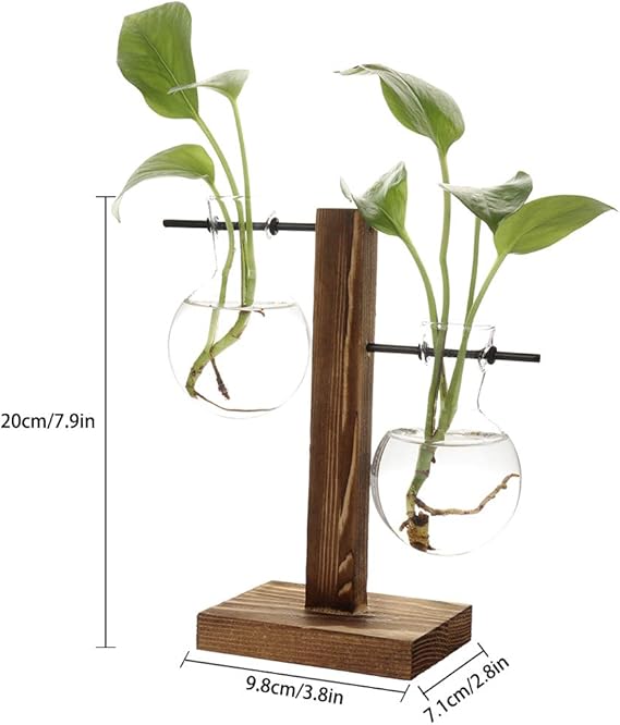 【Kullanımı Kolay】Ahşap ayaklı bitki teraryum şeffaf ampul vazosu yaratıcı, vintage ve kendin yap ekicidir, stand kolayca kurmanıza ve su dökmenize izin verir, sadece döndürün.