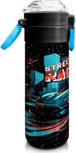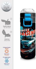 High 500 ml Erkek Çocuk Pipetli Termos/Matara – Nefti Yarış Arabası Desenli – Çift Kullanım Özelliği