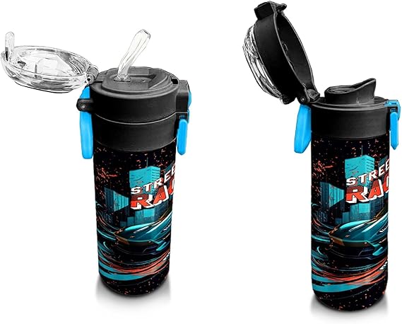 High 500 ml Erkek Çocuk Pipetli Termos/Matara – Nefti Yarış Arabası Desenli – Çift Kullanım Özelliği