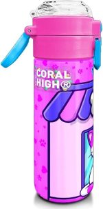 High 500 ml Kedi Köpek Desenli – Kız Çocuk Paslanmaz Çelik Okul Termosu/Suluk/Matara