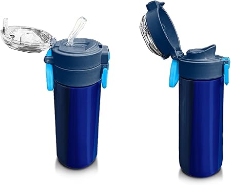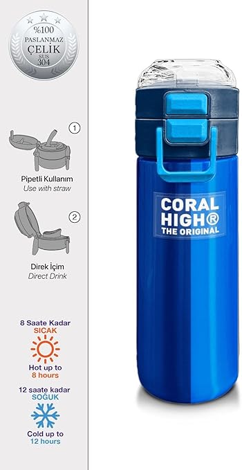 High Erkek Çocuk 500 ml Okul ve Günlük Paslanmaz Çelik Termos – Lacivert Mavi Çizgili Desenli – Sızdırmaz