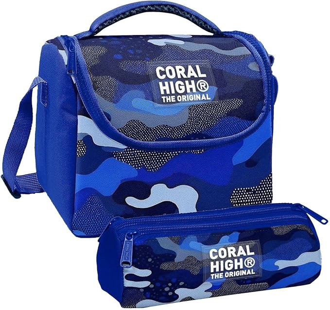 High Erkek Çocuk Mavi Lacivert Kamuflaj Thermo Beslenme Çantası ve Üç Bölmeli Kalem Çantası SetiUygunluk: 2 adet stokta