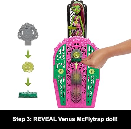 HIGH GİZEMLİ ARKADAŞLAR™ VENUS MCFLYTRAP Bebek Monster High Gizemli Arkadaşlar Gizemli Bahçe oyun seti, Venus McFlytrap bebek, 19’dan fazla sürpriz HYT75