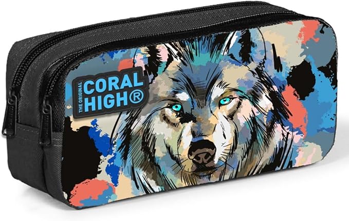High İki Bölmeli Erkek Çocuk Siyah Kurt Kalem Çantası Kalemlik