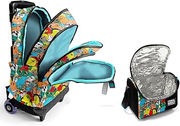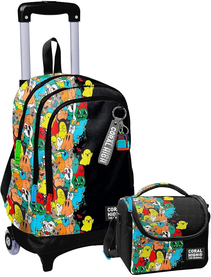 High Işıklı Tekerlekli Çekçek Okul Çanta + Isı Yalıtımlı Beslenme Çantası – Erkek Çocuk – Siyah Hayaletler