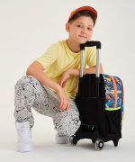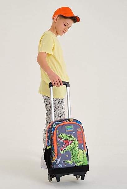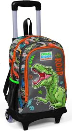 High Işıklı Tekerlekli Dinazor Kamuflaj Çekçek Okul ve Seyahat Çantası Erkek Çocuk Gri