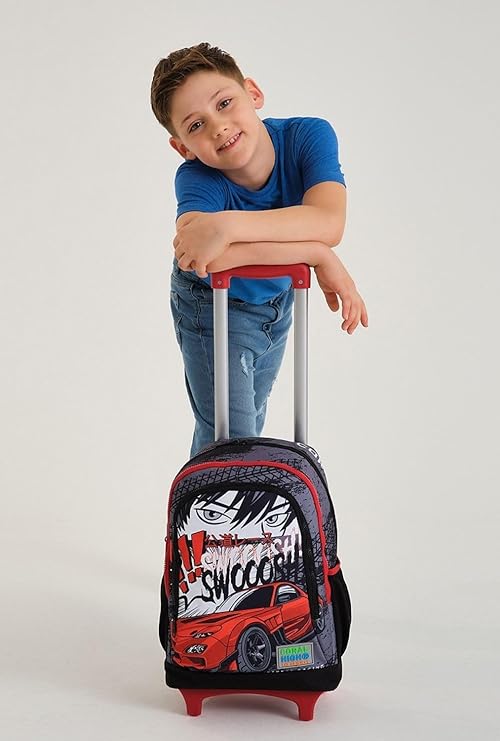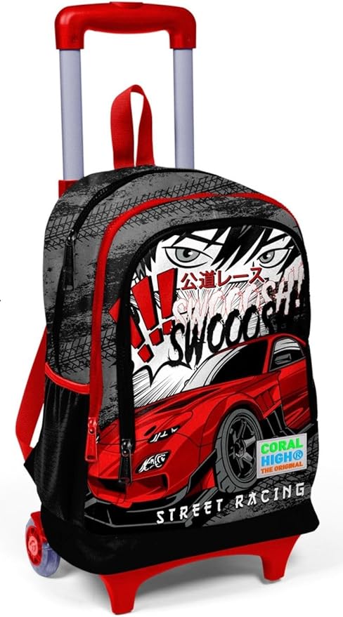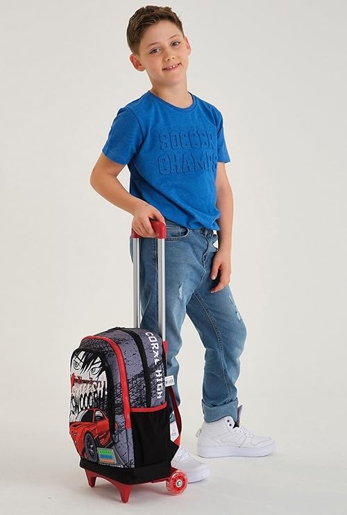 High Işıklı Tekerlekli Yarış Çekçek Okul ve Seyahat Çantası Erkek Çocuk Kırmızı Siyah