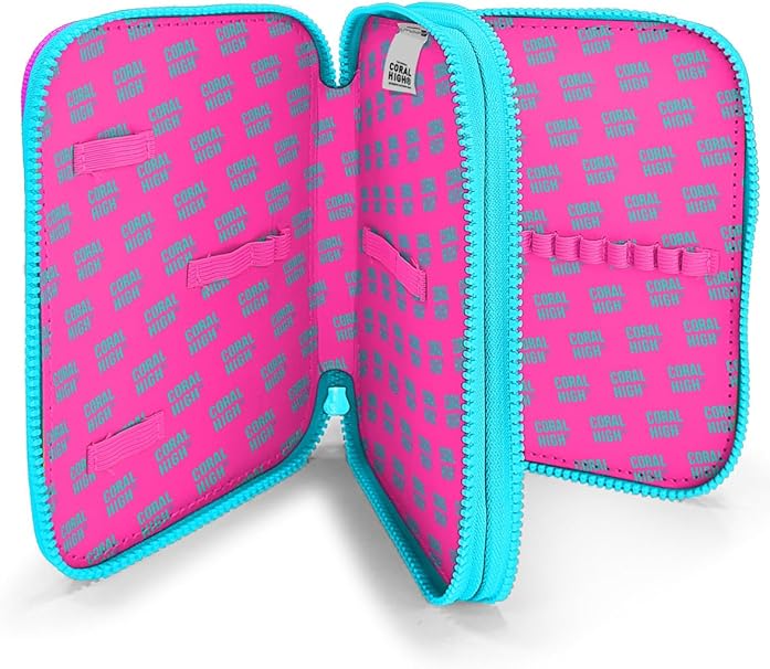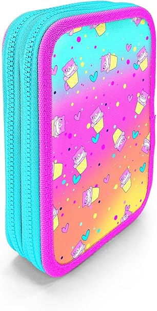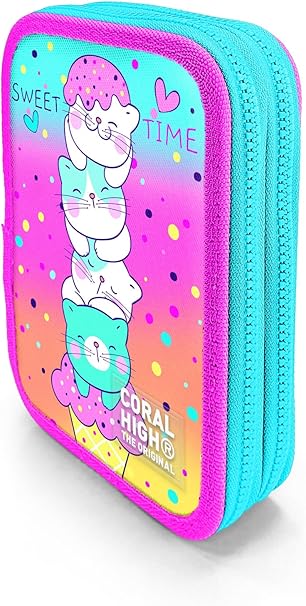 High Kids Renkli Dondurmalı Kedi Desenli Çift Katlı Kalem Çanta 11139