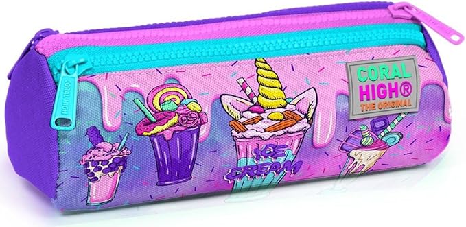 High Pembe Mor Dondurma Üç Bölmeli Kalem Çantası – Kız Çocuk