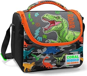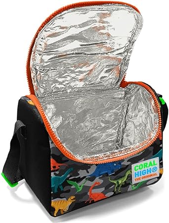 High Siyah Turuncu Yeşil Dinazor Baskılı Erkek Çocuk Beslenme Çantası