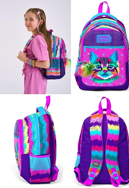 High Üç Gözlü Kız Çocuk İlk ve Orta Okul Çantası – Mor Kedi