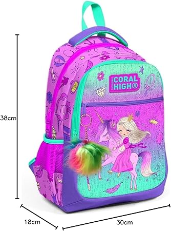 High Üç Gözlü Kız Çocuk İlk ve Orta Okul Çantası – Pembe Yeşil Unicorn ve Prenses
