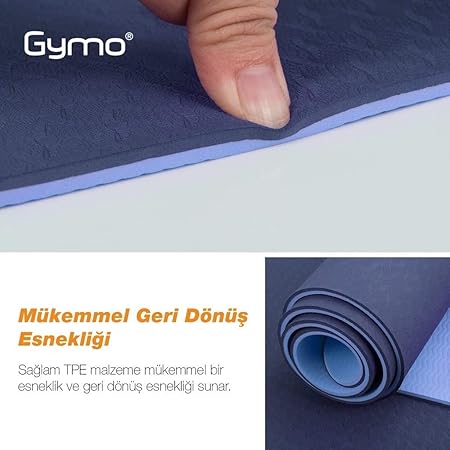 Hizalamalı 6mm TPE Yoga Matı Pilates Minderi Mavi