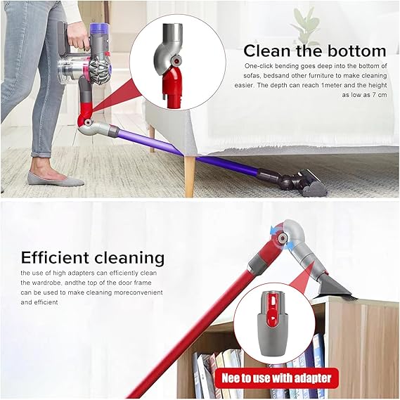 【Vazgeçilmez bir adaptör】Daha fazla çok yönlülük için mobilyaların altına ve köşelere ve açılara ulaşır. Alt adaptör Dyson elektrikli süpürgeniz için mükemmeldir, adaptör her Dyson severin evi için vazgeçilmez bir aksesuardır.