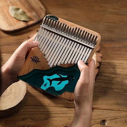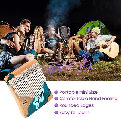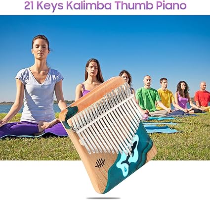 Hluru 21 Tuşları Kalimba Piyano Kayın Ahşap Başparmak Parmak Piyano Enstrüman Mavi Okyanus Balina Desen Çocuklar için Yetişkinler Yeni Başlayanlar için Tuning Çekiç ile Songbook